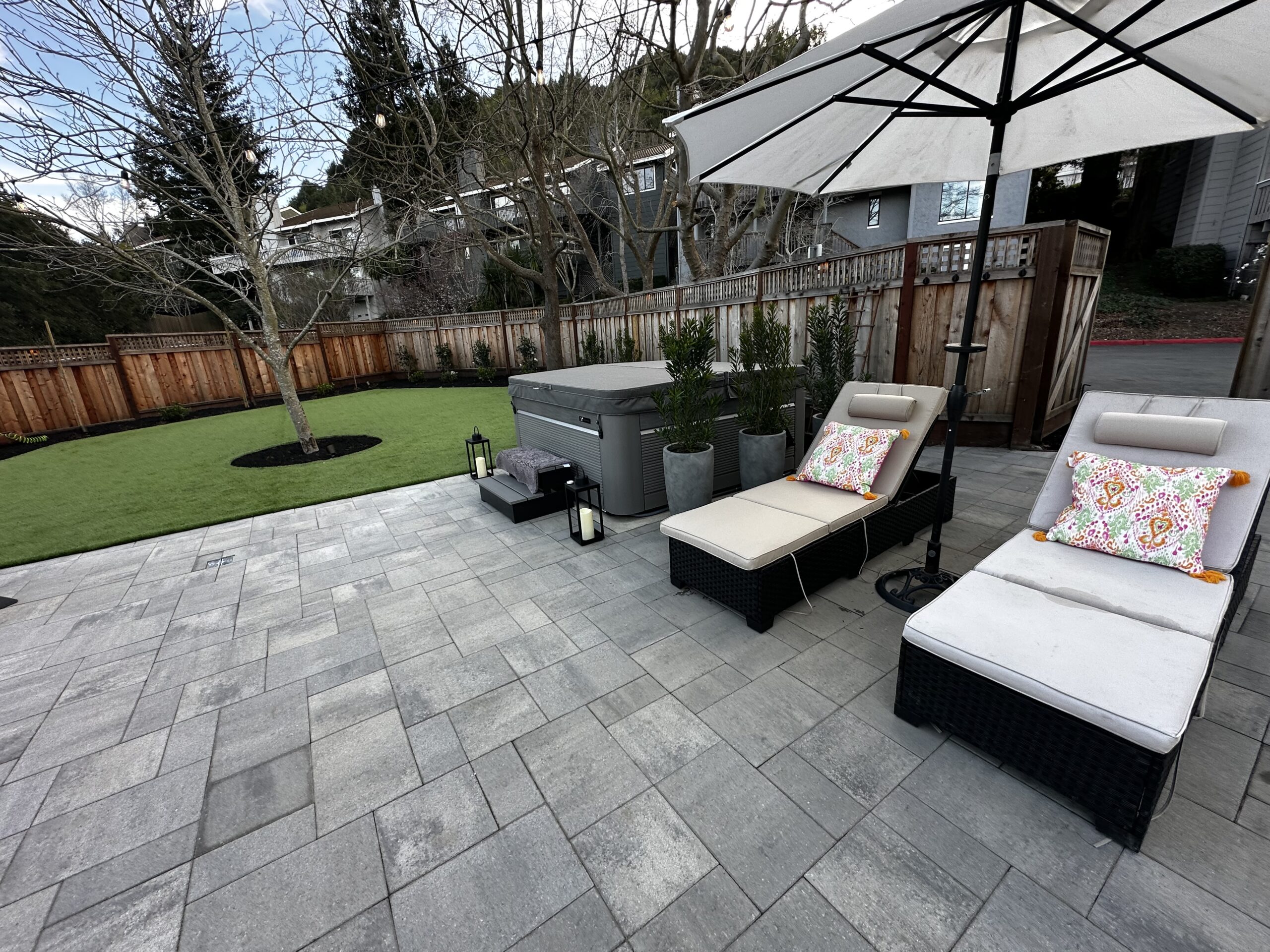 Project Title: Modern Backyard Retreat with Paver Patio & Artificial Turf